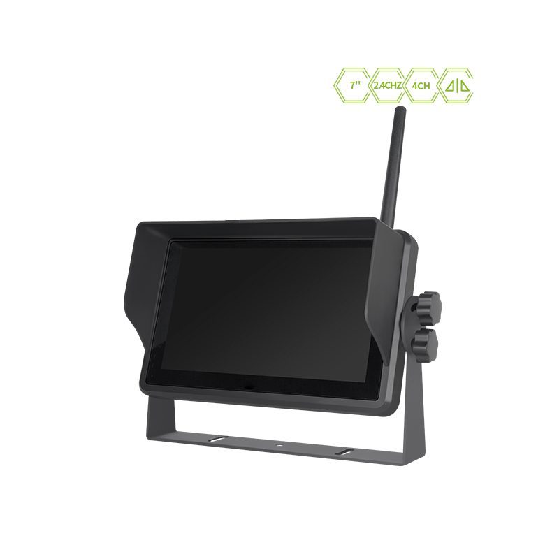 JY-M175W Monitor LCD digital sem fios HD de 2,4 GHz com 7 polegadas, visualização quádrupla e formato 16:9